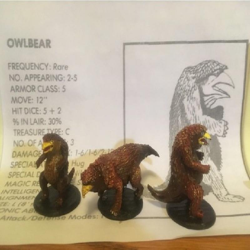 I added texture and added a new pose to my original version of the charmingly terrible Owlbear from the 1st Ed AD&D Monster manual.