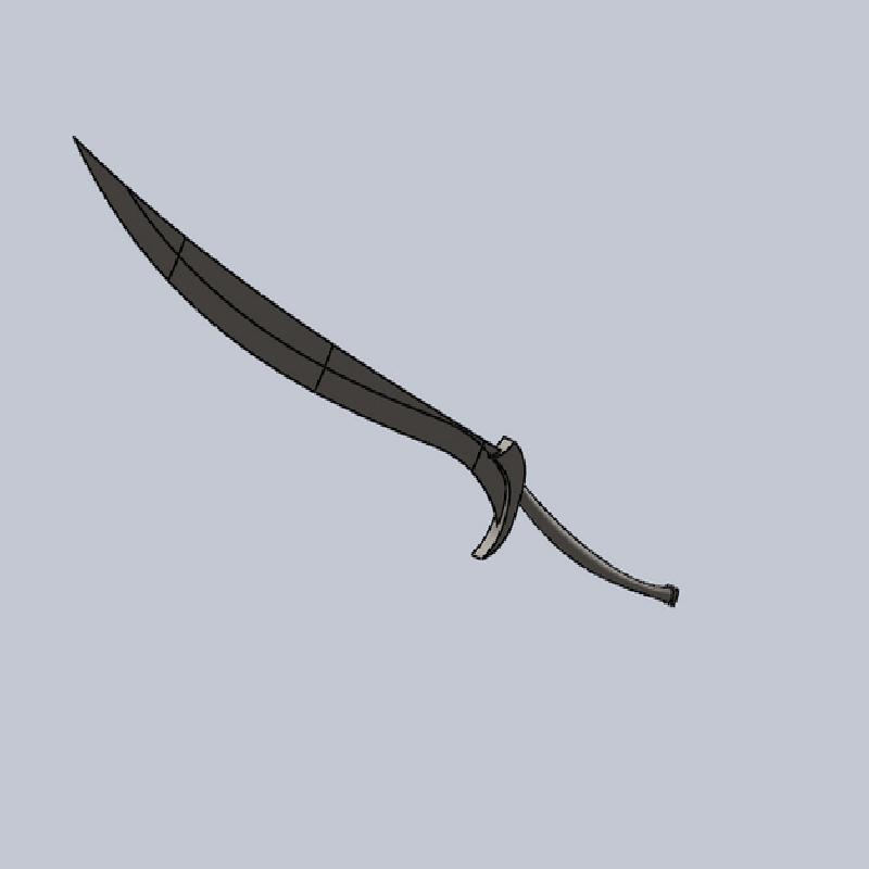 Rough approximation of Orcrist from The Hobbit films broken into 12 parts to fit onto a Makerbot deck.Overall length when the symmetric faces are glued together is ~49in. Intended purpose is a casting mold for fan-art.