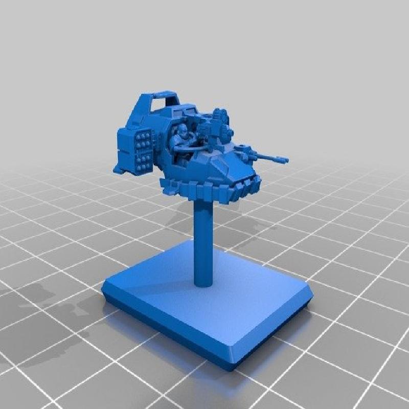 Land Speeder Typhoon proxy, with and without base. Sized larger than original model (rescale to 77% to get "regular" size).