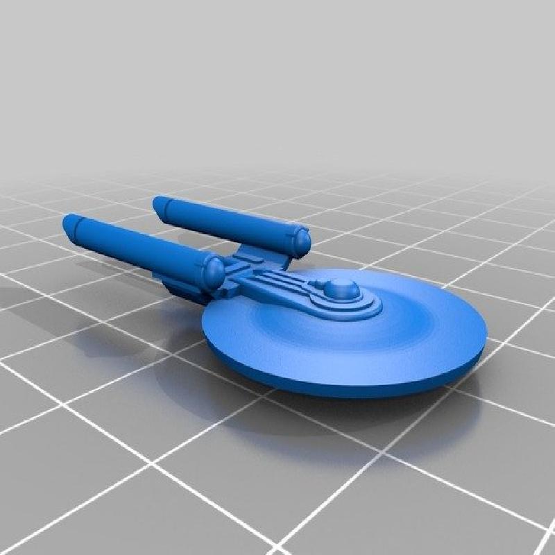 Imperialistic socialist running dogs in space! Scaled to roughly 1/7000; 2.5mm diameter mounting hole centered in bottom of saucer section.