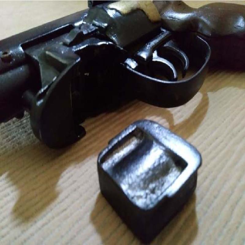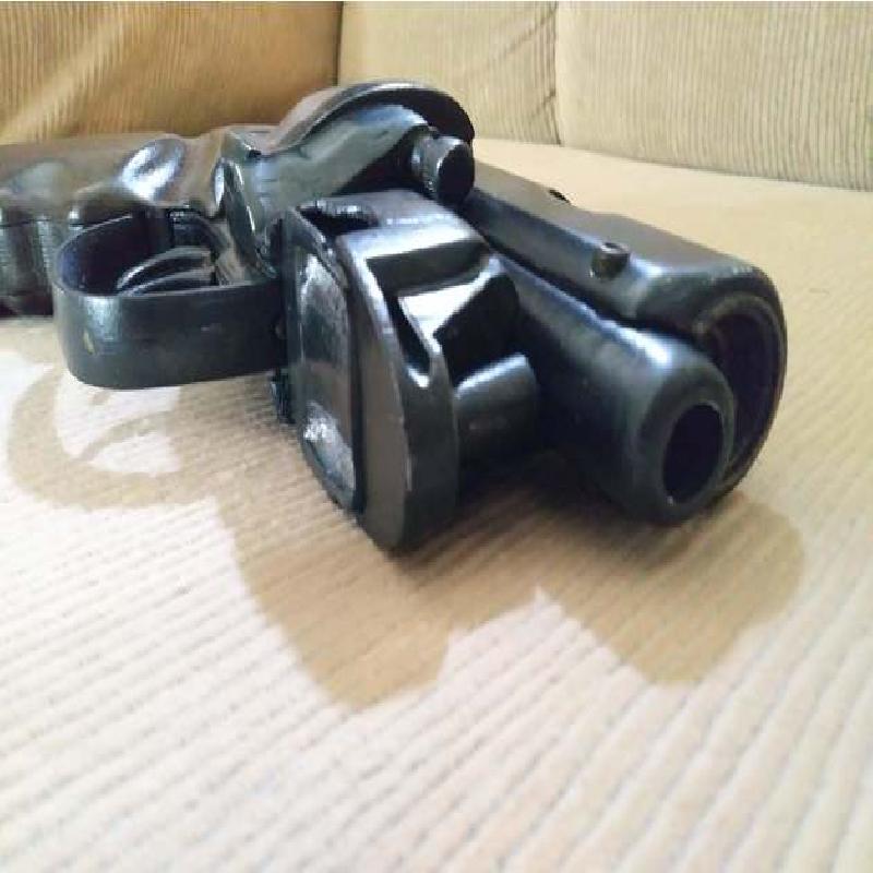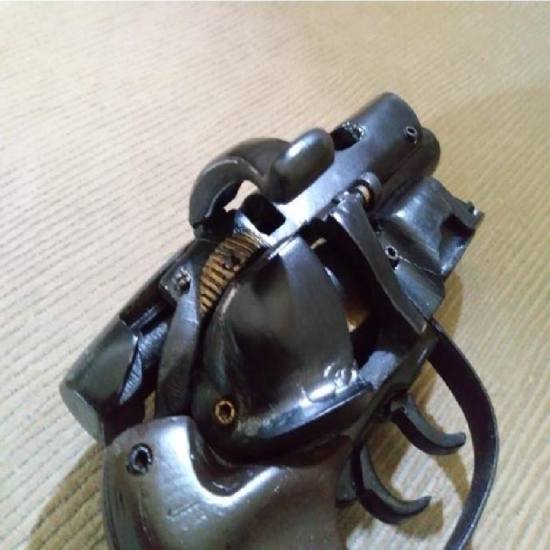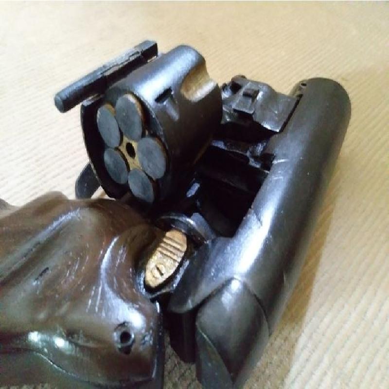 I modified the grips, frame, barrel, and mag sections to make it a snubnosed or derringer version. All of the functionality of the original is preserved. (The cylinder opens, the mag is removable, and you can cock it)