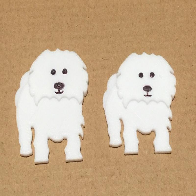 These are small, fun and quick-to-print, fridge magnets I designed in Tinkercad of our two Coton De Tulear dogs. Max is a little taller than Teddy, as you can see. I used a black sharpie to colour the eyes, nose, and mouth. Enjoy!