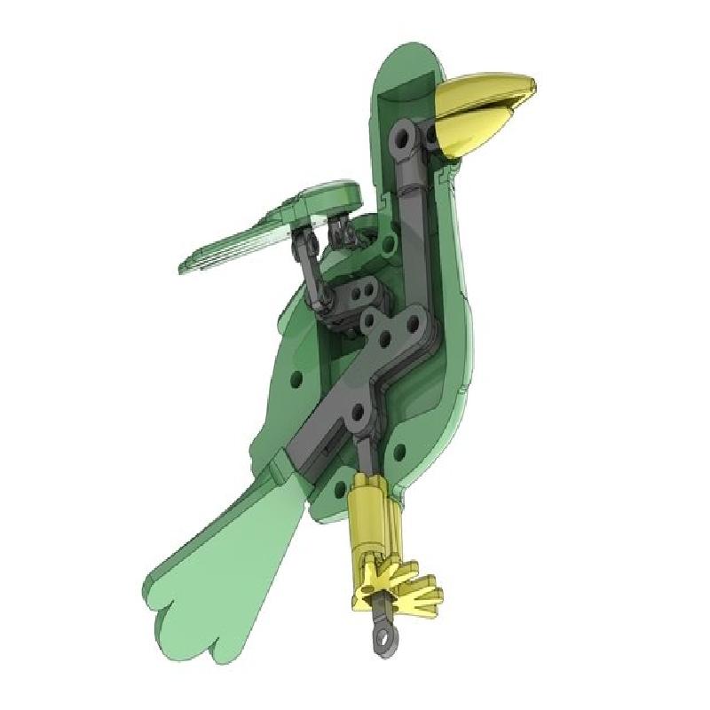 A Mechanical flapping bird toy. I wanted to try my hand at a moving mechanical toy. I decided that the head needed to turn and it does. Move its tail and the wings flap and the beak opens. It's a fairly complicated build and you do need to sand the parts that come into contact with each other if they are not smooth. It's a clean and satisfying build when it's done though. Sand and file away until it moves freely and it will flap and do all of its movements though. I am experimenting with various print in place joints and there's (4) in the wings and (1) in the neck. They are a bit fragile as the layer lines run horizontally so they can break kind of easily. I will update them if I have time to work on them but they do work just fine. There's a linkage that runs out of the feet that can be used to automate the whole thing if you are inclined to make a lever or motorize it. I've included a perch for the bird to sit on as the mechanical crank stand is still not working properly. It seems that a great deal of the movement is caught up in the slop of the 3D printed parts so the whole bird moves a little less than expected.
