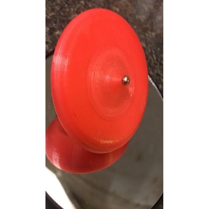 I love the fat ring spinning top! And wanted to take it a step farther and faster. I modified by cupping out, the fat ring base so that a standard BB gun BB could be glued in the tip offering less resistance and longer wearability.Next I modified the top spindle to couple to the hand pull, top launcher. WOW!!! Success with over 5 minute spins! Enjoy the best of both worlds!!!