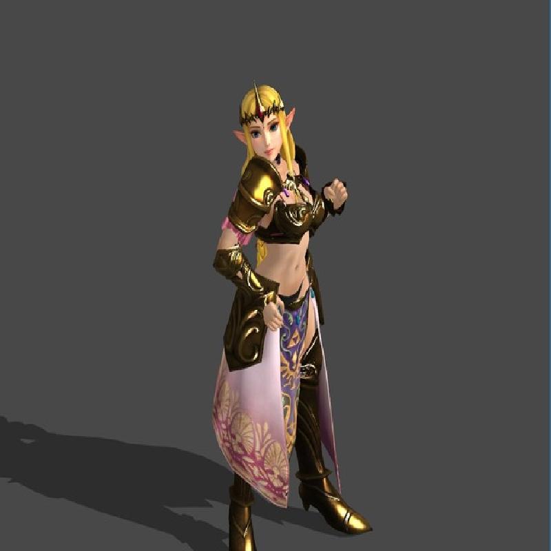 3D printable model of Princess Zelda from Hyrule Warriors. Print with support settings activated.