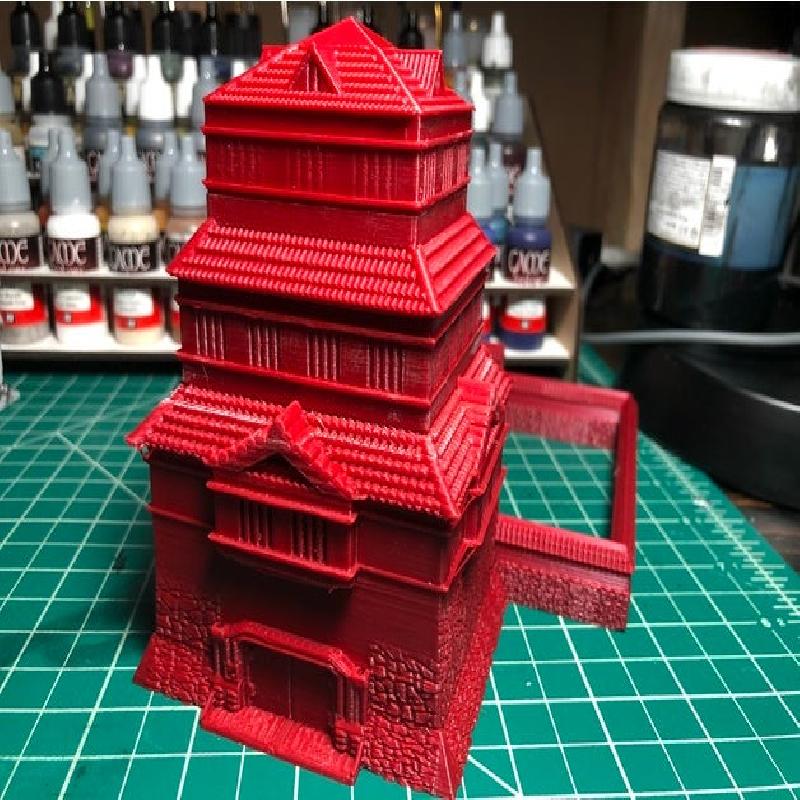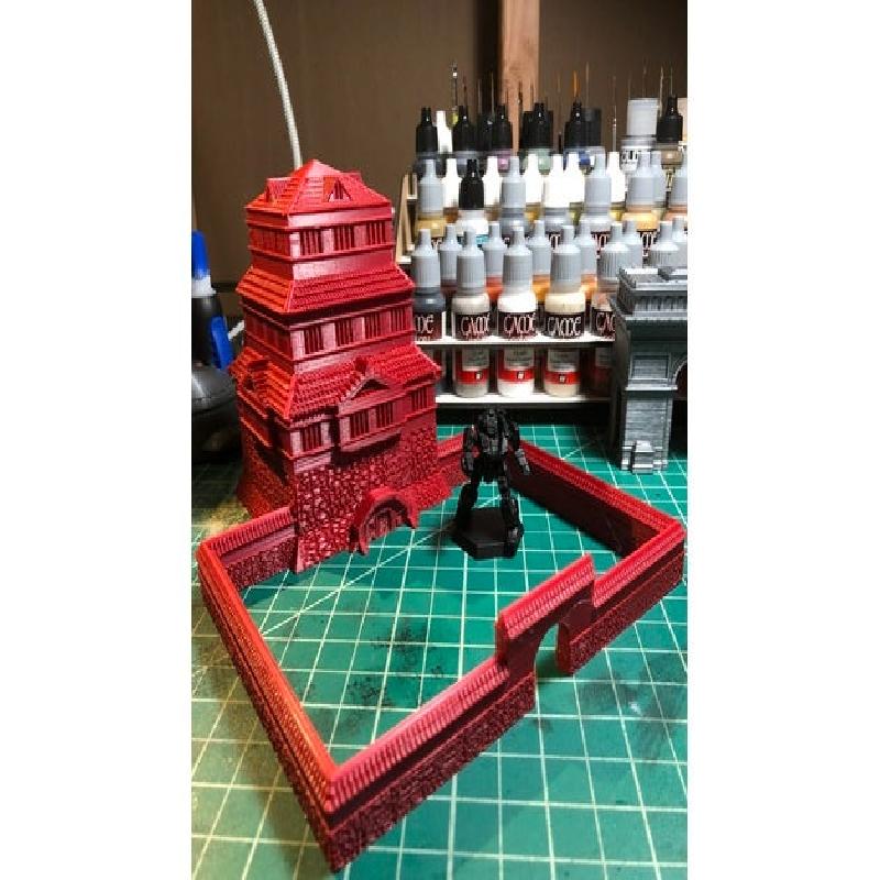 I created a simple mashup of the Japanese castle with sci-fi doors. Designed in the spirit of a House Kurita compound for BattleTech.