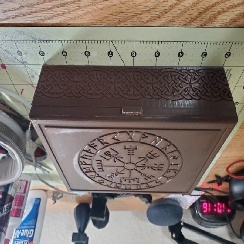 The designs on the base box is best printed at 0.2 mm or finer without supports. There will be some uncleanness at 0.2 but higher layer sizes look bad.