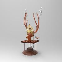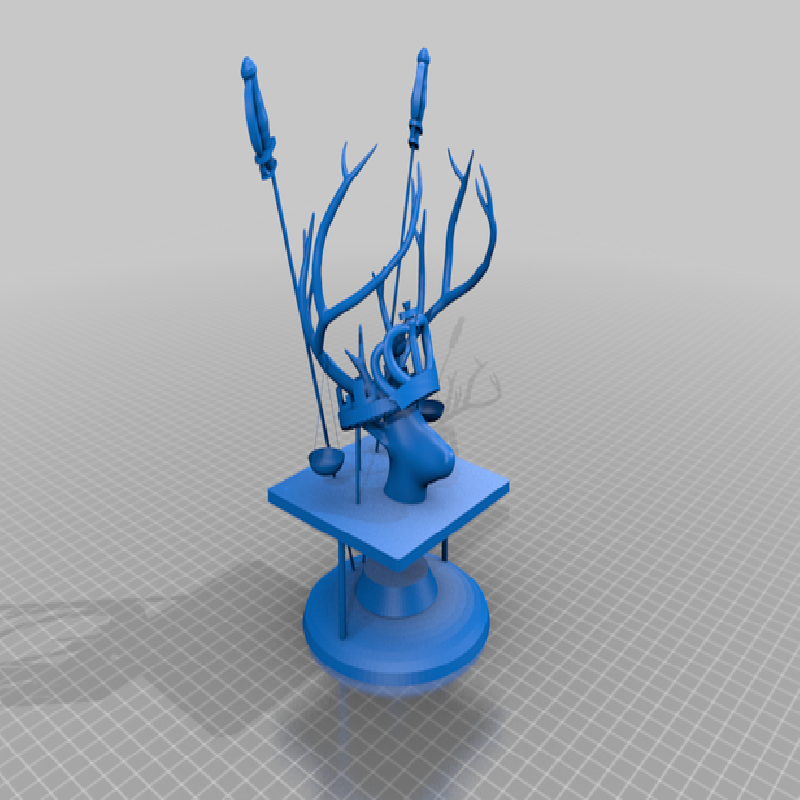 This project is based on model, Holiday Christmas Deer, created by yeg3d. I only used part of the model which is the deer head as the symbol of someone being forced to be a king. After being crowned as a king, this person must take up arms to protect the throne and the country on the war zone (chess board). The scales hanging on the antlers symbolize that this person needs to weigh the gain and losses, although both sides on the scales are important things.