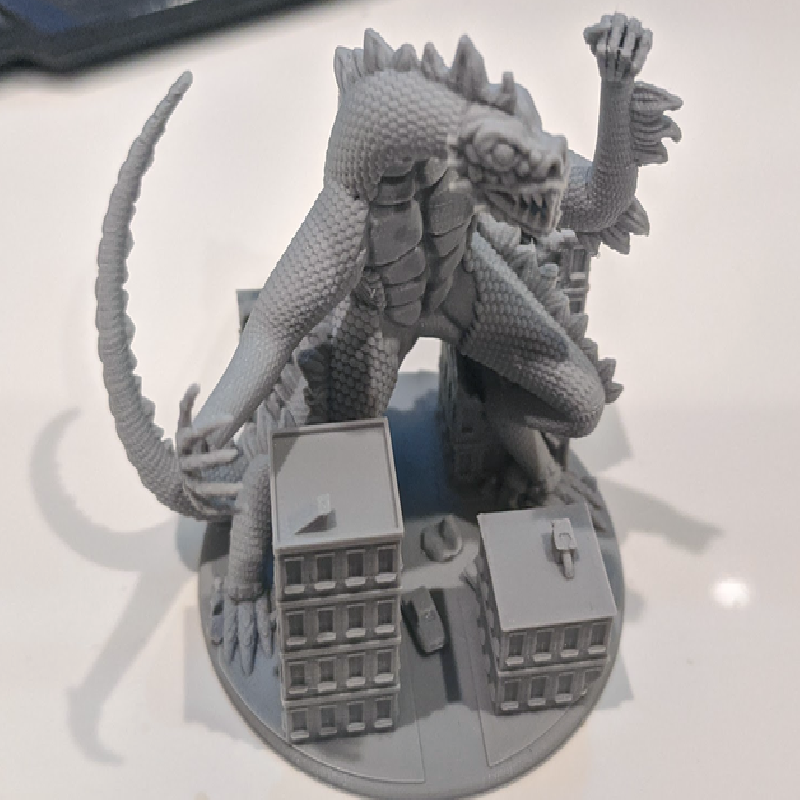 Here's my proxy model for Gigazaur from the board game, King of Tokyo! I had to separate the head to get it printed because of the teeth, so I included versions with the head attached and without. I put the model on a 50 mm base, which fits perfectly in the Tokyo or Tokyo Bay circles on the board =)