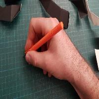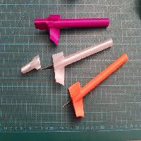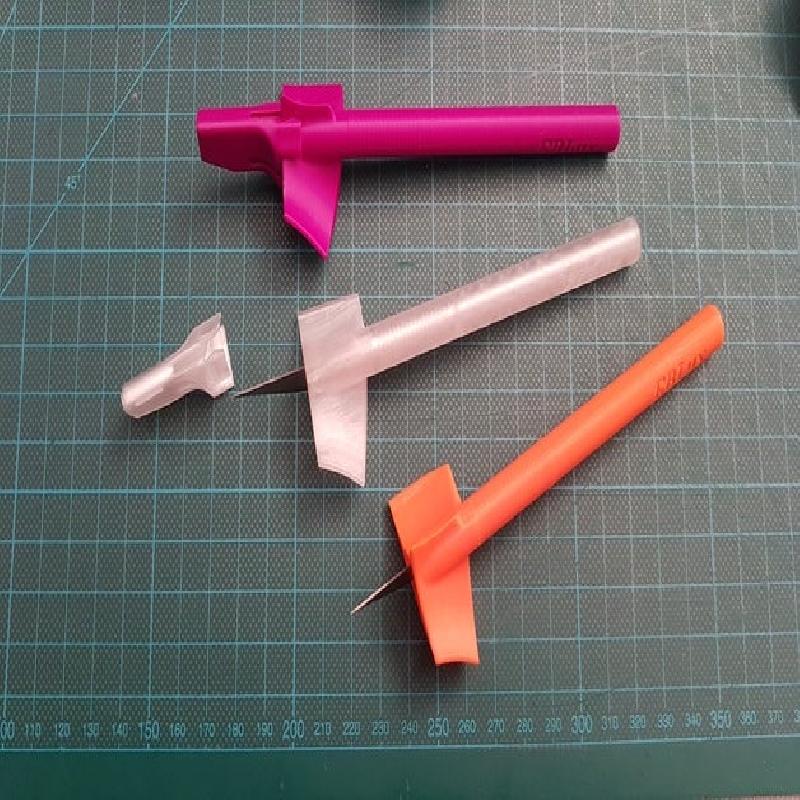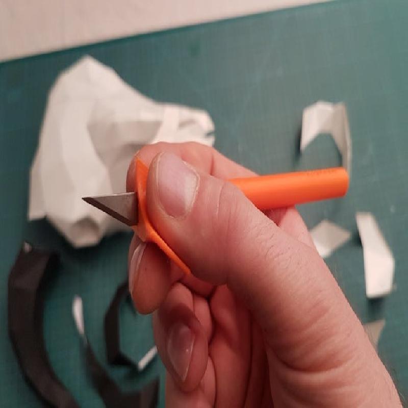 A hobby knife for cutting heavy card stock. I designed it after hurting my finger cutting a lot of heavy card stock for paper craft / pepakura. It allows you to use your thumb and index finger for cutting pressure and blade positioning. It is very easy on the fingers and quite agile for cutting detailed items.
