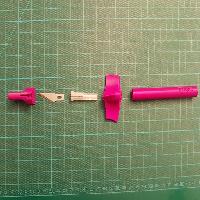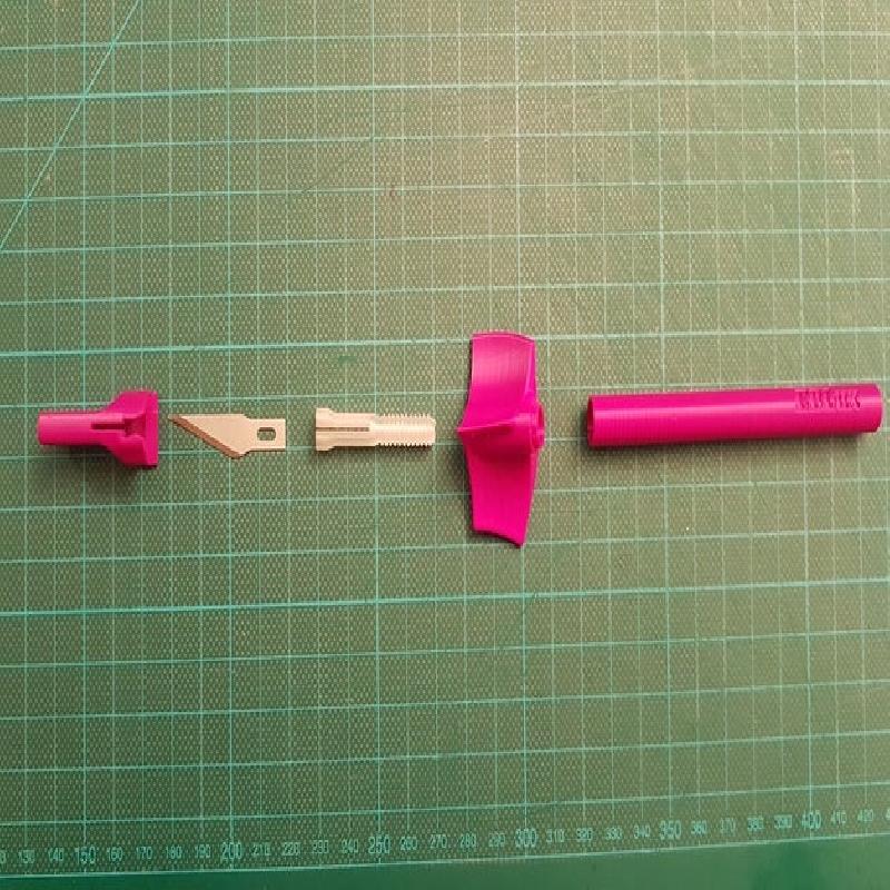 I have included the .3mf files for prusaSlic3r for detailed print settings and print orientation. Tolerances are tight so use a .4 nozzle at 0.15mm layer heights. Blade holder should be printed solid from PETG or similar tough material. Cap should also be printed solid, or with enough contours to make the thinnest sections solid. use a 5mm brim for all parts except the grip.