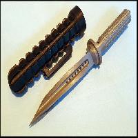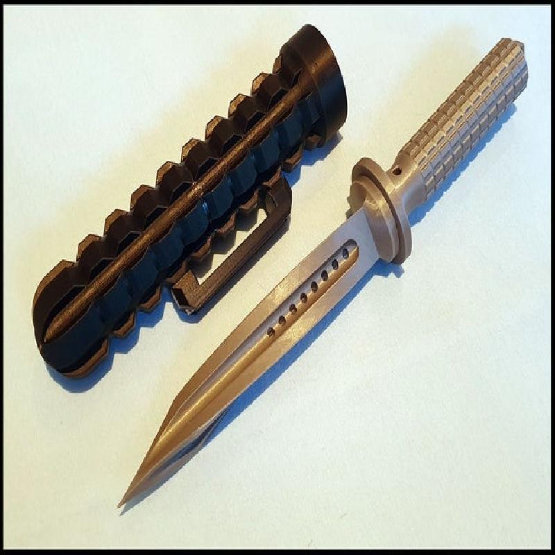 I made the dimensions to fit very well, so you maybe need to sand the insert for the knife blade a little with 100grid sandpaper till it fits. Also sanding needed for the connection ring on top of the bottom part of the sheath, after you get a good connection with the top part, use epoxy glue to connect them forever. Take care that you position them so the holes align on one side!