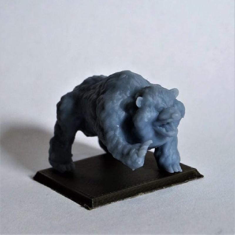 Bear I designed for a monthly gaming session. Teeth are obviously a problem (one of my early models). I prefer my minis solid resin, so apologies for not hollowing out the model.