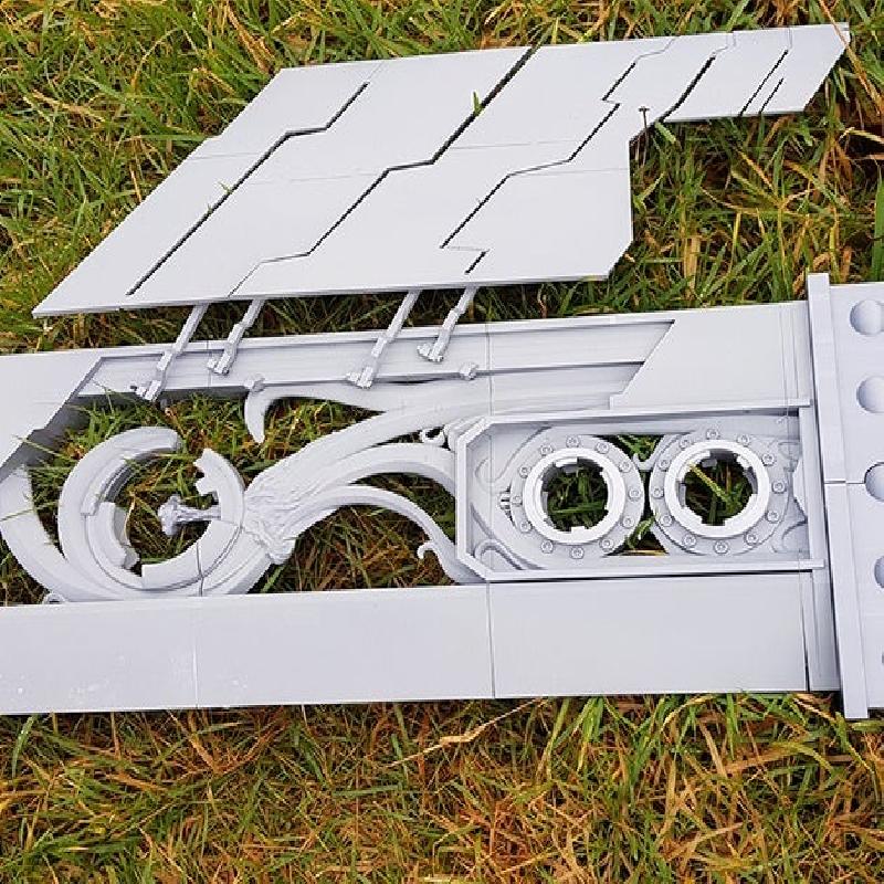 The Buster sword from Final Fantasy VII! This is by far the largest Project I've built so far and is a 1 to 1 scale model. An important notice about this model when I designed it originally used wooden broom handles as the main structure for it and this is made the sword too heavy to pick up by the handle so if you're planning to build this model keep that in mind that you won't be able to pick it up the sword out horizontally.