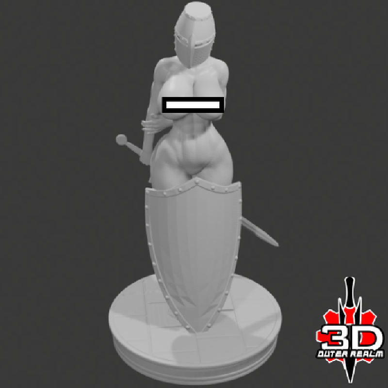 DND Miniature Nude Female Templar. She's not ready for battle but with a sword, shield and helmet she's still a fearsome sight. Spice up your tabletop quests with this holy warrior.