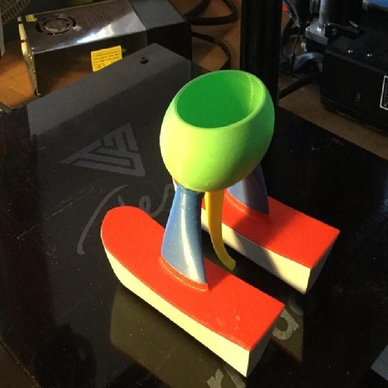 This toy was originally drawn to be printed on a Statasys machine. It had a dual extrusion head and always printed a raft and support structure with soluble material. I had never used anything else and ease of printing wasn't much of a concern. It had some virtues. It was very accurate, probably because of the heated chamber. And it was easy to use. There was only one setting - hollow fill or solid. On the down side it weighted 300 lbs and could only use ABS that was $250 a roll. Once I was worried I had damaged the nozzle. But not to worry, the factory said I could replace it for $1200.