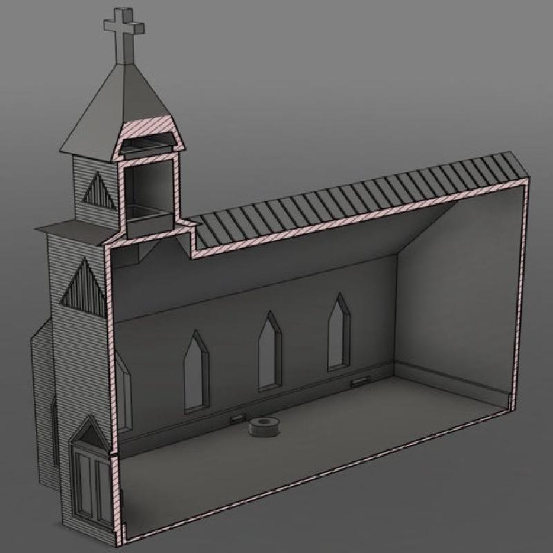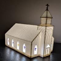 I drilled two small holes in the back of the church body for the power cable from the lamp and the on/off switch that also came with the lamp. I intended for this to be a nightlight, but the LEDs are super bright and it's more like a daytime lamp. :D If I redid this project, I'd look into a dimmable LED function to tune this better for a nightlight.
