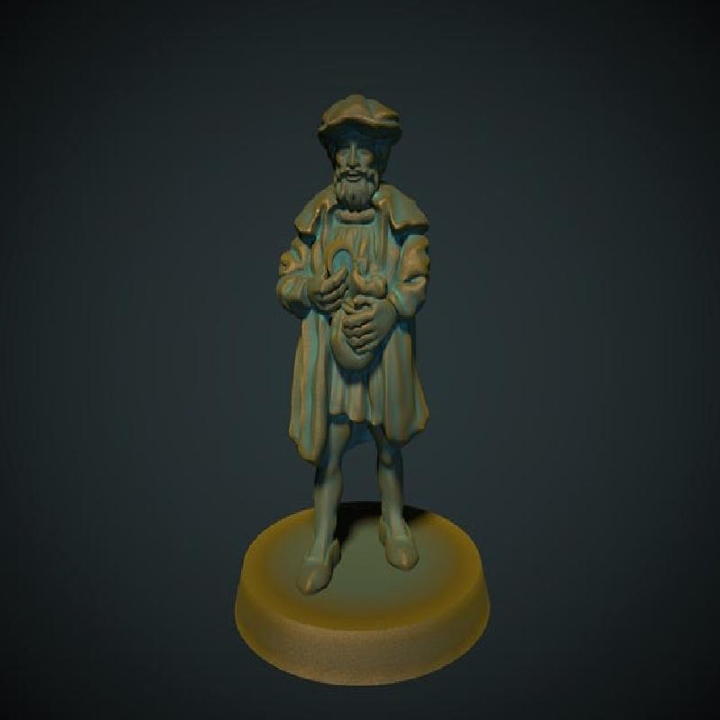 A merchant, or a nobleman. Or a wealthy townsman. The model is loosely based on a sculpture found on one of the old tenement houses in Lodz, Poland.