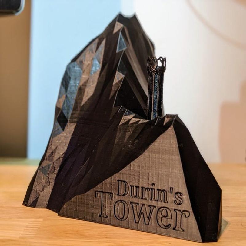 A recreation of Durin's Tower on the summit of Zirakzigil from the Lord of the Rings (LOTR) stories. This is what I imagine it would look like. I pulled the summit peak from a topographical (topo) map of Zermatt Switzerland. I specifically chose the Matterhorn peak from the Alps since there is speculation that the Alps, and specifically the Matterhorn, were inspirational landscapes in Tolkien's development of Middle Earth and the Misty Mountains. In the LOTR story, Summit Zirakzigil is located within the Misty Mountains.