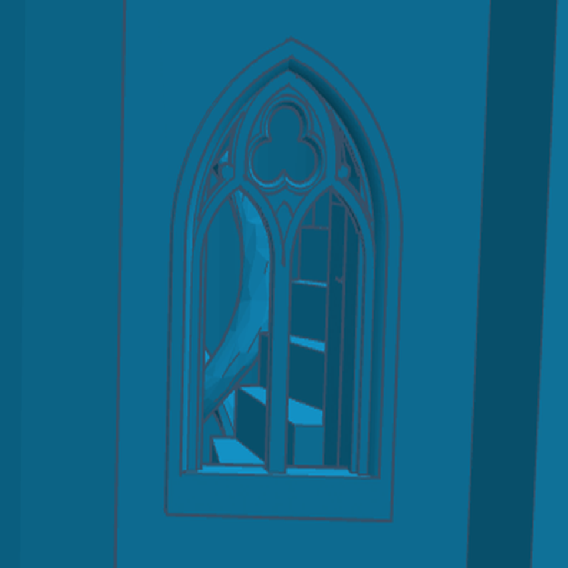 The low detail version has NO window frame and no gargoyle inside the tower.