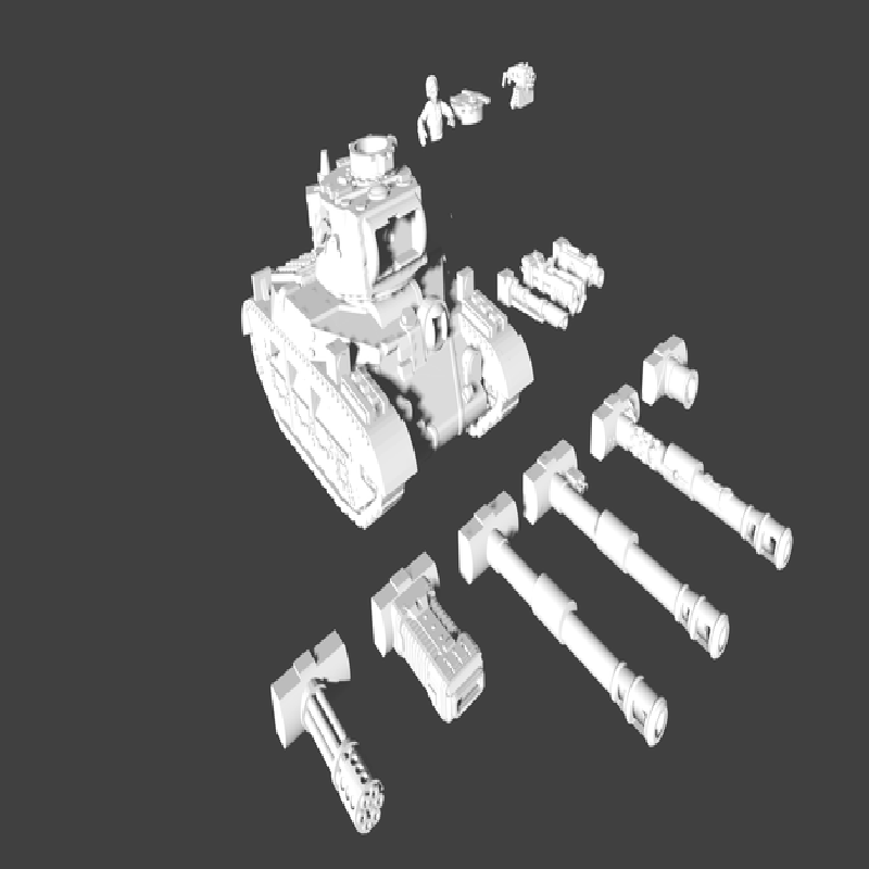 I realized how much I disliked the Imperial Guard standard Leman Russ, so I made a replacement based on the british Matilda II (Courtesy ChillyT). It is remade very close to the in game proportions, and designed with 4x2 mm magnets for swappable guns. I have supplied Battle Cannon, Demolisher, Conqueror, Hammer of Sunderance, and Executioner and Punisher (Courtesy bulldog2707). One of the commanders is posed for mounting the pintle storm bolter by maz3r, which fits in the slot in the turret ring. Might need a bit of work with a bit of fine sand paper.