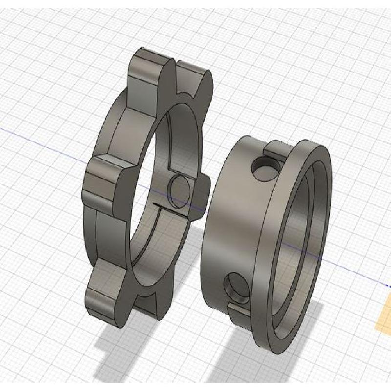 There are two cog switch options- a fixed and a rotating option. The rotating option is two parts that nest. The rotating option has indents for 6mmx2mm disc magnets (for a total of three magnets) that prevents it from free spinning and lets it snap into position. The switch rotates about 60 degrees.