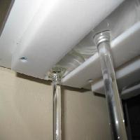Very thin and almost invisible basic wine glass hanger. Screw, glue or tape under the shelf. The screw holes are counter sunk so the screw head is flush and essentially invisible. For open shelves that are not against a wall, glasses are blocked from being able to slide way through the hanger. There are two pieces that are mirror images. You can load each one into your slicer or load one and make a mirror image.