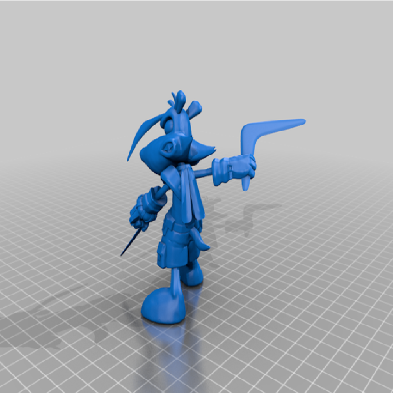 It was extracted from the game Ty the Tasmanian Tiger 3 and prepared for printing including smoothing and posing based off a reference image. The scale is at 10cm, which should make it easy for anyone to adjust to the size they need. I haven't printed it.