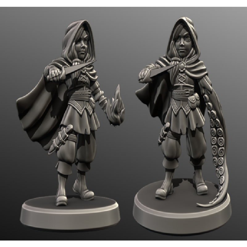 She's a young human arcane trickster, about 13 years old. A princess of the old empire, she escaped when a revolution destroyed her family. For the past 7 years she's been on the run with her palace guard protector. A mysterious entity had infested her during the attack, now it is manifesting strange mutations in her.