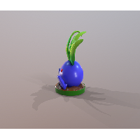 Oddish is a Pokémon that resembles a blue plant bulb. It has a round body, beady red eyes, a small mouth, and ovoid feet. Five large, green leaves sprout from its head. As demonstrated in the anime, these leaves are prehensile and can be used to scale vertical surfaces and catch light objects. Known by the scientific name Oddium Wanderus, Oddish lives in grasslands. A nocturnal Pokémon, Oddish buries its sensitive body in the ground during the day to avoid the sun and fool predators. If its leaves are pulled in this state, it will respond by shrieking horribly. It starts to move when its leaves begin absorbing moonlight, which it uses to grow. Oddish will wander up to 1000 feet (300 meters) during the night to scatter its seeds and find a nutrient-rich patch of soil in which to plant itself. The more fertile the earth, the glossier its leaves will be. It is thought that its feet become like tree roots while planted. In the past, Petal Dance was its signature move. -Bulbapedia