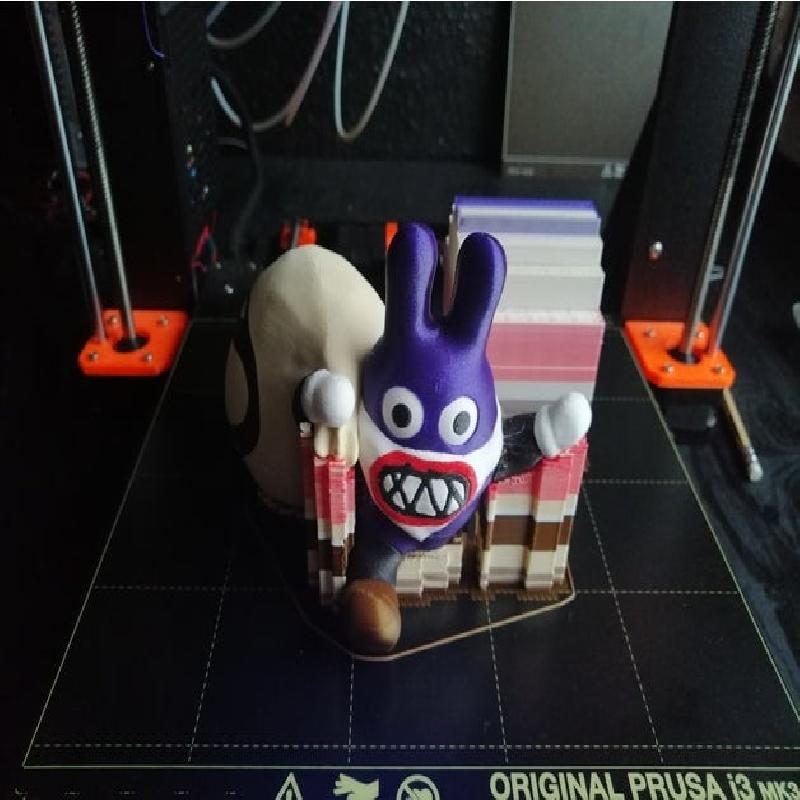 It's easy to print this model with six colors. Keep four colors (Purple, Black, White, Beige) loaded at all time and change the fifth color from Brown to Red once the feet are printed completely.