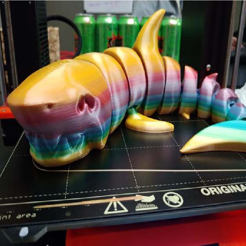 The shark was split into parts in PrusaSlicer, then each segment rotated and aligned to be interlocking. The slicer's print preview was used to ensure the interlocking parts remained separated and didn't intersect.
