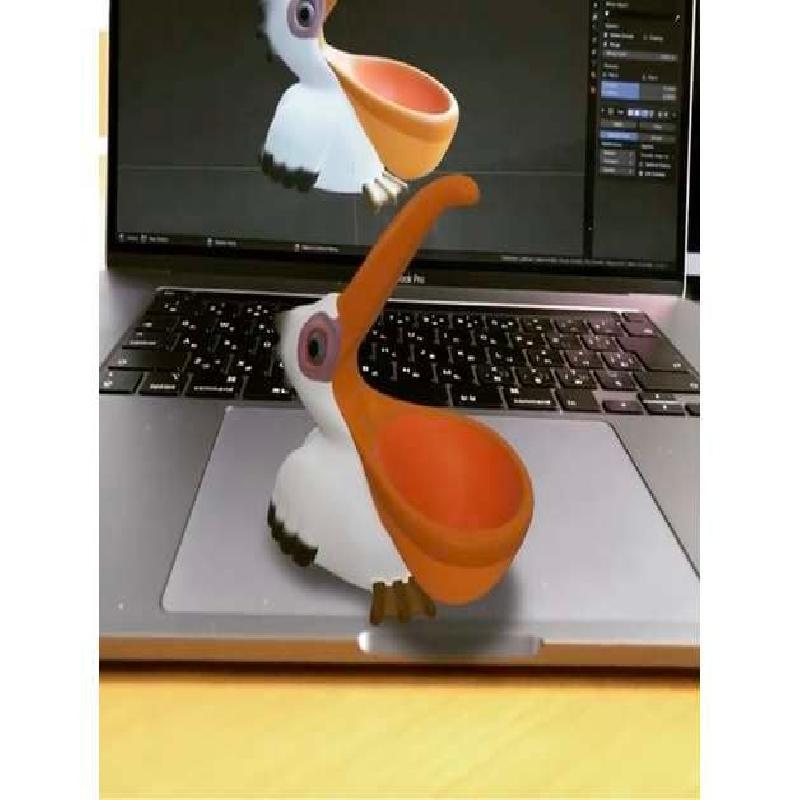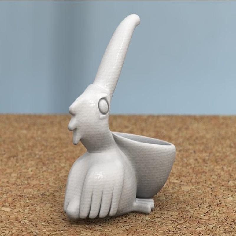 This was modeled on a sitting pelican with a wide open beak.