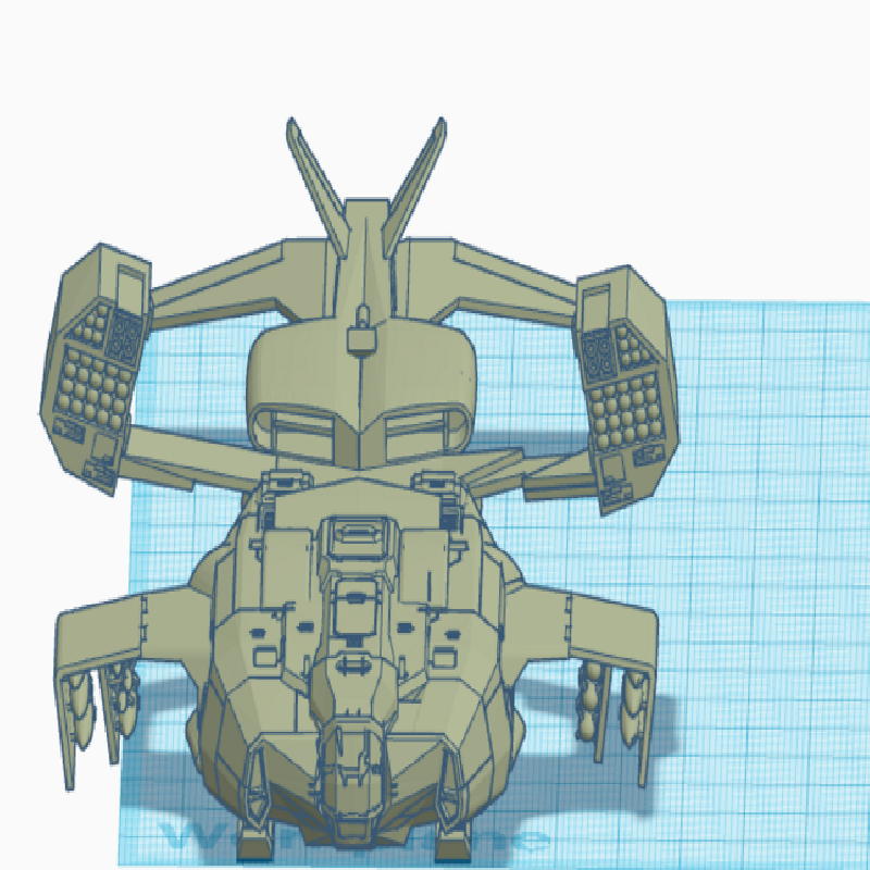 Another mashup of ships: the front of a Type-6 Transporter from Dangerous Elite and the rest is the Cheyenne UD-L4 Cheyenne dropship from Aliens.