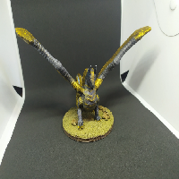 The model is split in three, the two wings and the body. I also printed a 76 mm base for him and decorated it afterwards. It is scaled for a 76 mm base, but feel free to scale him up or down.