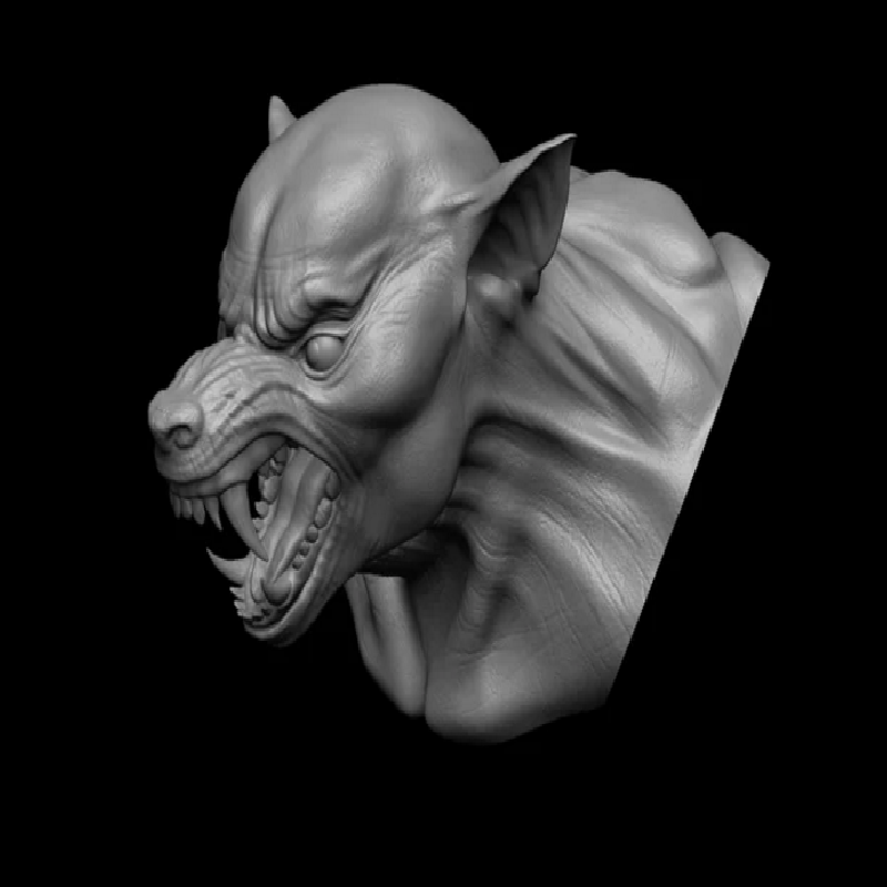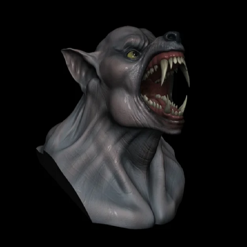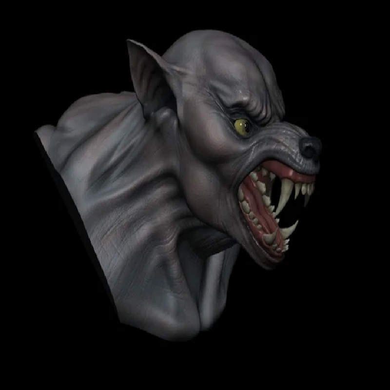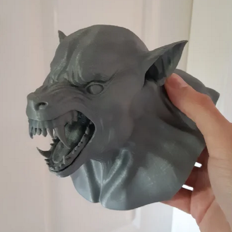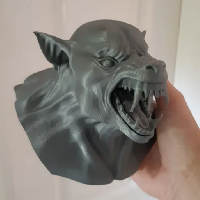 Inspired by the awesome werewolf from American Werewolf In London, by the master makeup artist Rick Baker, this started out as a doodle and turned into a cool head to print. The model is in three parts, the main head, and the upper and lower jaws. The two jaws should just push into the cavities in the head but there may be some tweaking needed and maybe some glue if they are loose, but on my test print it was a tight fit with no glue needed. My test print was on a Creality CR10s with supports, making sure to rotate the parts so the flat base are on the print plate.
