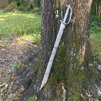The sword is printed in several parts before being assembled with epoxy or superglue. There is a metal rod on the inside to support the sword. The metal rod is 36 inches long and 3/16 inch in diameter. For those using the metric system, you can scale the sword up a few percent and use a 5mm diameter rod instead.