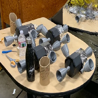 The pictures are posted in the order of build. First print the thruster cage and the cage top. They are made as separate parts to avoid needing support structure up the middle of the cage. Saves a ton of filament and time. After printing those two parts, take the top and fit it into the cage. It will be a very tight pressure fit, i.e., no glue is needed to keep them together. The top will also only fit one way as I didn't make it perfectly symmetrical. Start pressing in the side of the top and work your way around the edge until it's fully seated. You may have to use an exacto knife to clean off the edges from squished filament. Now print out 2 of the thruster base parts and 4 thruster nozzles. Install 2 of the thruster onto the base plates and the other 2 onto the base plates built into the cage. In hindsight, I should have built all base plates into the cage. It could be a snug fit but I would add some epoxy if you don't want those thrusters falling off. Finally, as you can see in the pictures, cover the cage with black and silver material. The cage is now ready to be installed to the lunar lander.