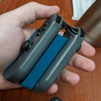Didn't like the side by side design for one handed play so I made this. One Joycon aims backwards and one forward so you can play with all the buttons in a smaller area. Has a wrist strap on the backside just cause it can.