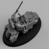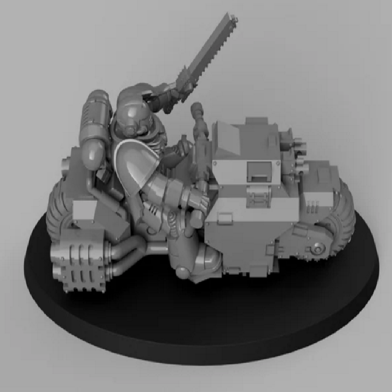 Hi all. Here you can find a beautiful device to allow your angry Space Warriors to get to the enemy that little bit quicker. Eschewing the use of Anti-Gravity and other such high tech shenanigans the finest brains of the galaxy have produced this - two wheels and a large engine and unfeasible (or non-existant) suspension.