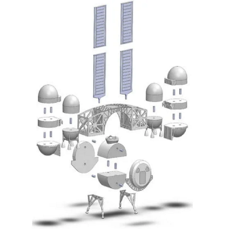 The Dynetics lunar lander 3D model is from the Dynetics website. There they have a very detailed step by step guide to assembling the lander, as well as a parts download. You can find those at the bottom of the page here.https://www.dynetics.com/about/corporate-responsibility/#virtual-outreachThis is the description from the site: