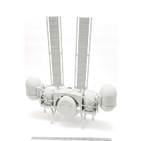 This is Dynetics' proposal for a lunar lander for the Artemis program. This lander is one of three HLS (human landing system) proposals accepted, along with proposals from SpaceX and Blue Origin. The width of the model is 1 foot, and estimating the width of the actual lander to be about 30 feet from promotional renders comparing to the size of the pictured astronauts, the scale is approximately 30:1.