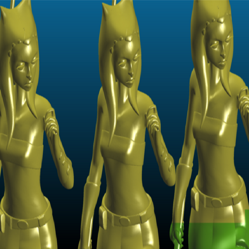 Ahsoka with her lightsaber - smoothed, fixed, hollowed and resized for 6 inch scale. The hollowed version with highest poly is in the zip file! Happy printing!