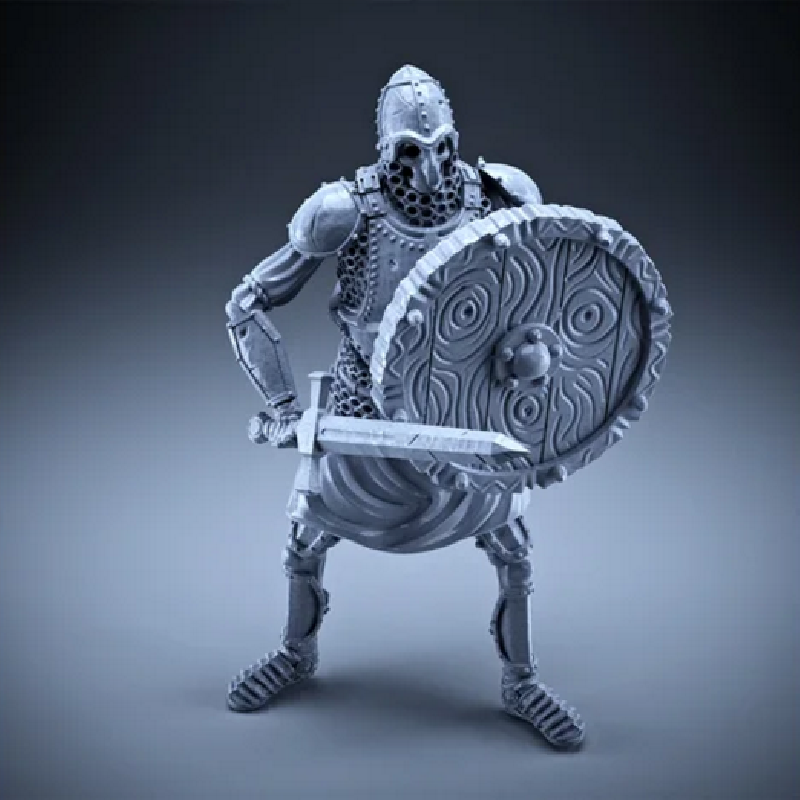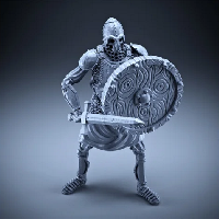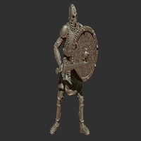 One variation of the Skeleton-themed NPC pack of FREE miniatures. Sword and Round Shield equipment combo, heavy armor with chainmail, metal plate armor and a tunic underneath.