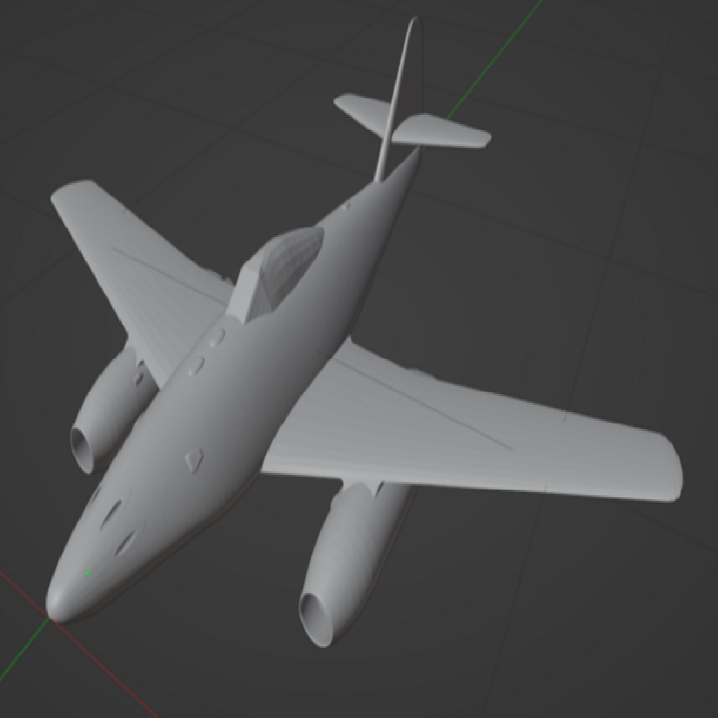 The shape of the plane is fairly simple but it might need to be broken into a few smaller pieces to get optimal prints. One thing I noticed is that despite my attempts to prevent this issue, the thinnest part of the rudder is not printable. I will try to fix it in the future. In the meantime the blender file is attached for adjustments and changes (x60 scale for .stl conversion).
