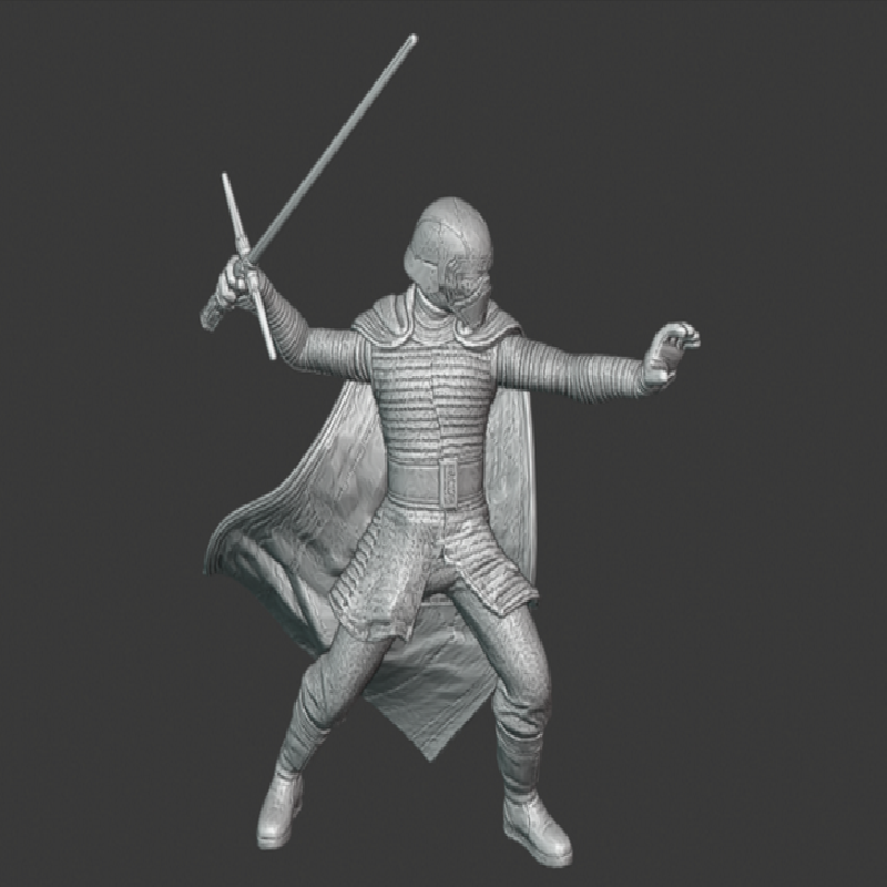 The miniature is made using an exported game file which was posed, cleaned, sculpted and repaired. I have not tried to print it yet so consider it a WIP. Should print fine on resin printers, not sure if it is FDM optimized.