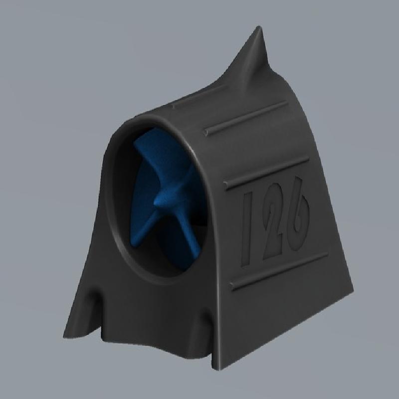 it has holes below for magnets along with suction channels. Because of the suction generated by these channels the thing sticks to the surface more as it goes faster thru the air. Can be used on metal surfaces of vehicles or stationary objects. I installed only 6 small magnets and tested the thing up to 110km/h without problems. If you want you may increase or decrease the number of magnets. leave the magnet holes connected the main turbine channel empty as they will create more suction while moving. The turbine is connected to the body via mini ball bearings inside so you can use it for years.