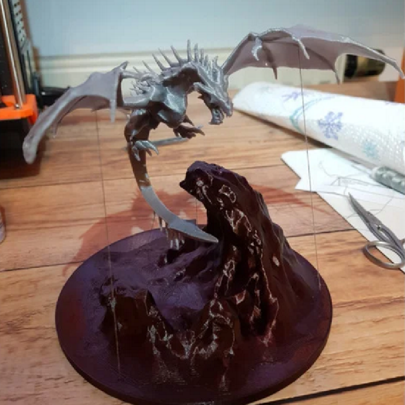 I printed it at 150% scale and used CA glue to assemble the dragon. For connecting the thread to the parts, I recommend this order using a tiny drop of CA glue: