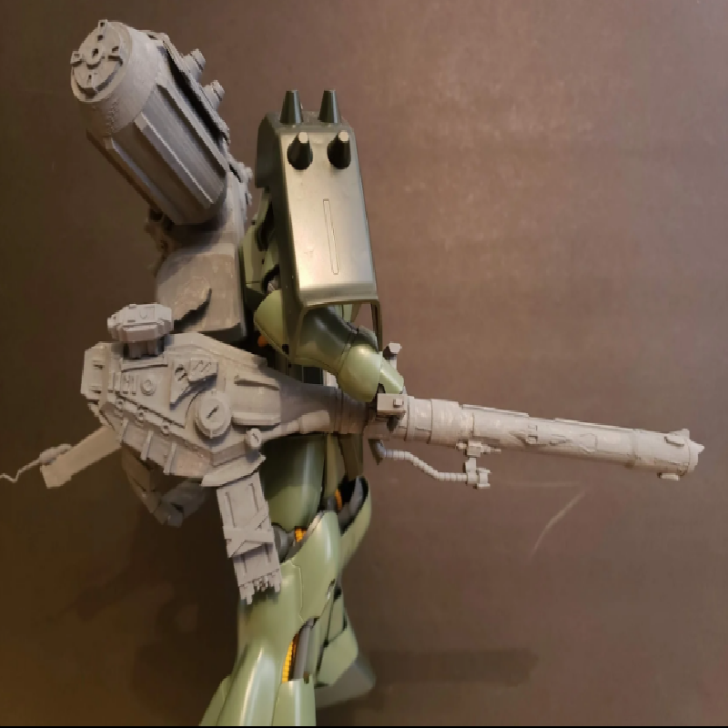 The AMS-119 Geara Doga was the main mobile suit used by Char Aznable's Neo Zeon forces during the Second Neo Zeon War. One Geara Doga variation was the Heavy Armed Type, which replaced the standard backpack with a heavy armament backpack that featured two propellant tanks. The tanks allowed for longer operating time, and the backpack powered the long-range, shell-firing Lange Bruno gun. The Heavy Armed Type's concept was carried forward to the AMS-129 Geara Zulu, the primary mobile suit used by the Neo Zeon during the Laplace Incident of UC 0096. However, that version of the Lange Bruno was upgraded to a beam weapon. The original Geara Doga (Heavy Armed Type) was still fielded in combat alongside the newer Geara Zulu ~mahq.net