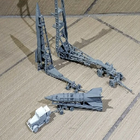 V2 launch trailer Meillerwagen, 1/100 scale, will want some greebling if scaled up. Some details have been changed for looks/ printability.